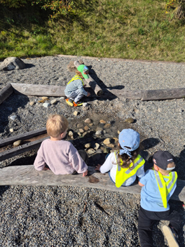 Die Kita-Gruppen nutzten das sommerliche Wetter der vergangenen Tage für Ausflüge und Aktivitäten im Freien. Auf dem grosszügigen Spielplatz mit der Wasserbahn verfolgten die Kinder gespannt, wie das Wasser Kies und Steine seinen Lauf entlang transportierte – und ob diese wohl bis ans Ende der Bahn gelangen würden.