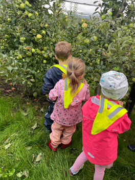 Im Rahmen des neuen Naturprojekts dürfen die Kinder einmal im Monat auf dem Bauernhof tatkräftig mithelfen. Letzten Dienstag war es so weit: Eine fröhliche Kinderschar zog durch das hohe Gras der Obstplantage und beteiligte sich begeistert an der Apfelernte. Mit fleissigen Händen pflückten sie die reifen Früchte direkt von den Bäumen und durften diese anschliessend selber verkosten. Auch die Tiere kamen nicht zu kurz: An Ästen aufgesteckte Äpfel sorgten für eine willkommene Zwischenverpflegung. Ein besonderes Highlight bildete der Besuch bei den süssen Kälbern, die von den Kindern mit grosser Freude bestaunt wurden.