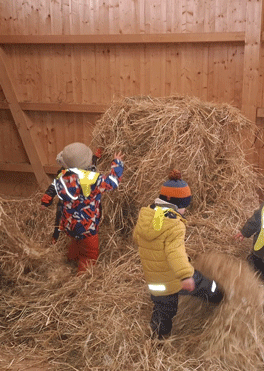 Mit grosser Begeisterung halfen sie dabei, die neugierigen Kühe zu füttern. Ein besonderes Highlight war die fröhliche Strohschlacht in der Scheune – ein Spass für alle! Zwischendurch stärkten sich die Kinder mit einer gesunden Apfelzeit, bevor das Abenteuer weiterging.